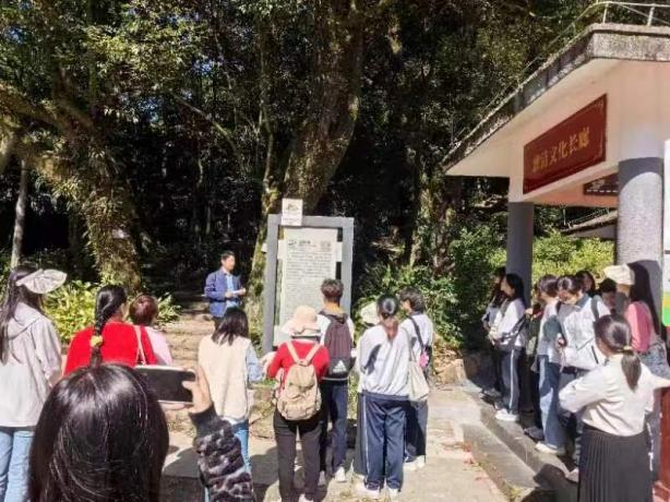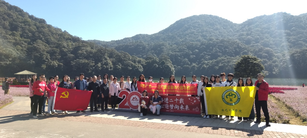 随后,休养的教职工队伍来到从化石门森林公园,与园艺学生党支部学生党员汇合,一起开展“绿美广东-石门森林公园寻绿行”。秋高气爽,眺高望远,碧蓝的天空下绿色森林在红叶点缀下熠熠生辉、秋意无限。经过色彩斑驳的树影,最后来到了天池花海,参加活动的教职工被无边的美景吸引住,纷纷打卡拍照,享受着秋日暖阳、红叶和花海。