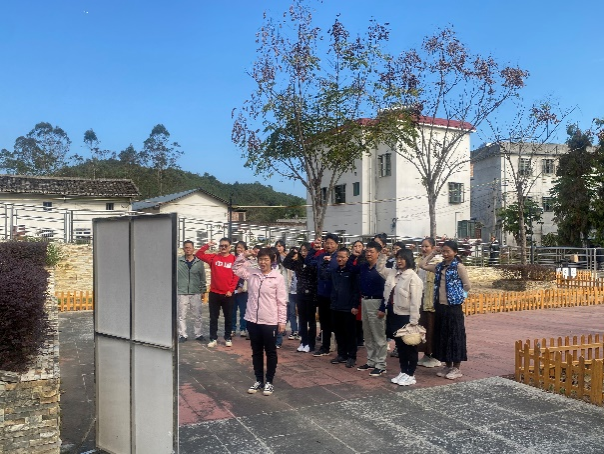 12月2日上午,教职工们前往广东省革命老区村、红色村党建工程示范点、惠州市党员教育基地芒派村参观学习,党员老师们瞻仰了遗址雷公贝祠堂、芒派村革命烈士纪念墓,深入了解雷公贝人民在中国共产党领导下,积极参加抗日战争和解放战争,充分展现出敢于斗争、敢于胜利、不怕牺牲的革命精神。在广场金色党徽前,学院党委书记陈晓玲带领20多名教职工党员重温入党誓词,坚定理想信念,牢记共产党人的初心使命。