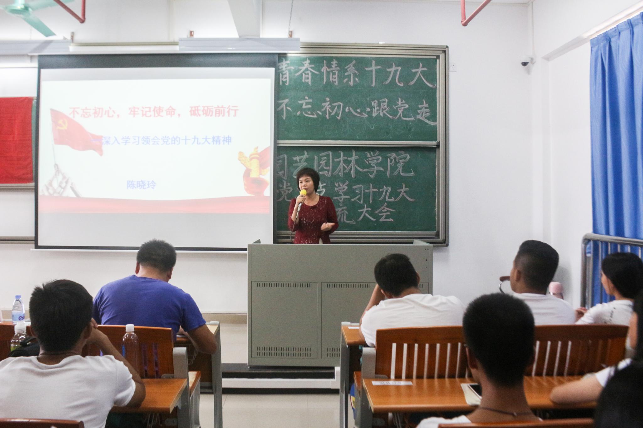 大会伊始,陈晓玲书记向大家总结并阐释了十九大会议内容。一共有以下四点:第一,十九大的历史地位;第二,十九大政治报告的主要内容;第三,学习十九大报告的结合点;第四,学习贯彻十九大精神的要求。在此次讲话中,陈书记向大家介绍了建设美丽中国的理念,提出了对教师党员和学生党员的要求,并希望m88的学子们能够不忘初心,牢记使命,发挥园艺园林专业的优势,成为中国梦的参与者、实践者和贡献者。