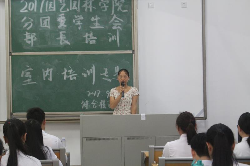 整个培训活动由室内讲座培训和户外拓展培训两个环节组成。在上午的培训活动中学院前任学生会副主席林纯、学生会副主席郑顺琦、分团委第一副书记魏培婷和学生会主席郑增武从礼仪形象、情绪管理、人际交往和部门管理等方面分享了各自的心得体会。余倩花老师对团学干部提出了三点要求:第一,转变角色,明确职责;第二,多面能手,成就自我;第三,德才兼备,服务奉献,希望同学们能够成为更加优秀的人,为学院的学生工作作出积极的贡献。