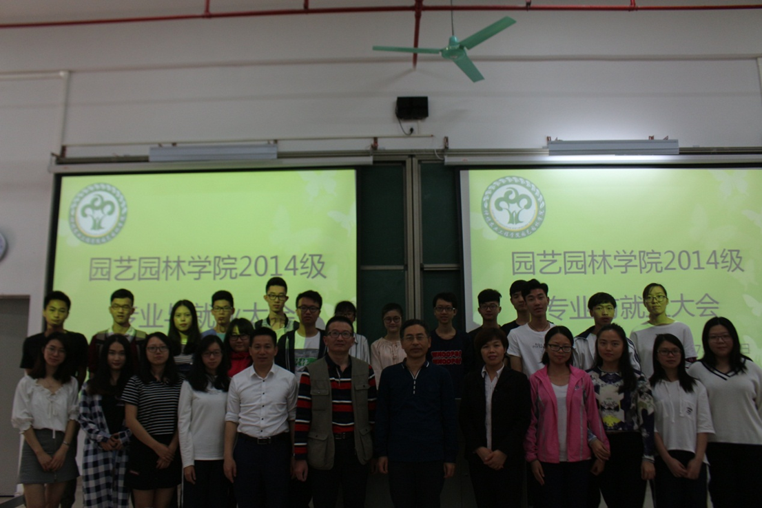随后,陈平教授做园林、园艺及林学相关专业研究方向的介绍。考研究生要有方向、有计划、有韧劲,看事物要关注在提升自我能力的点上。最后,郭春华院长作总结发言,希望同学们能慢慢思考上述老师的讲话,并对14级学生关于未来就业的疑问与困惑进行了针对性的解答。