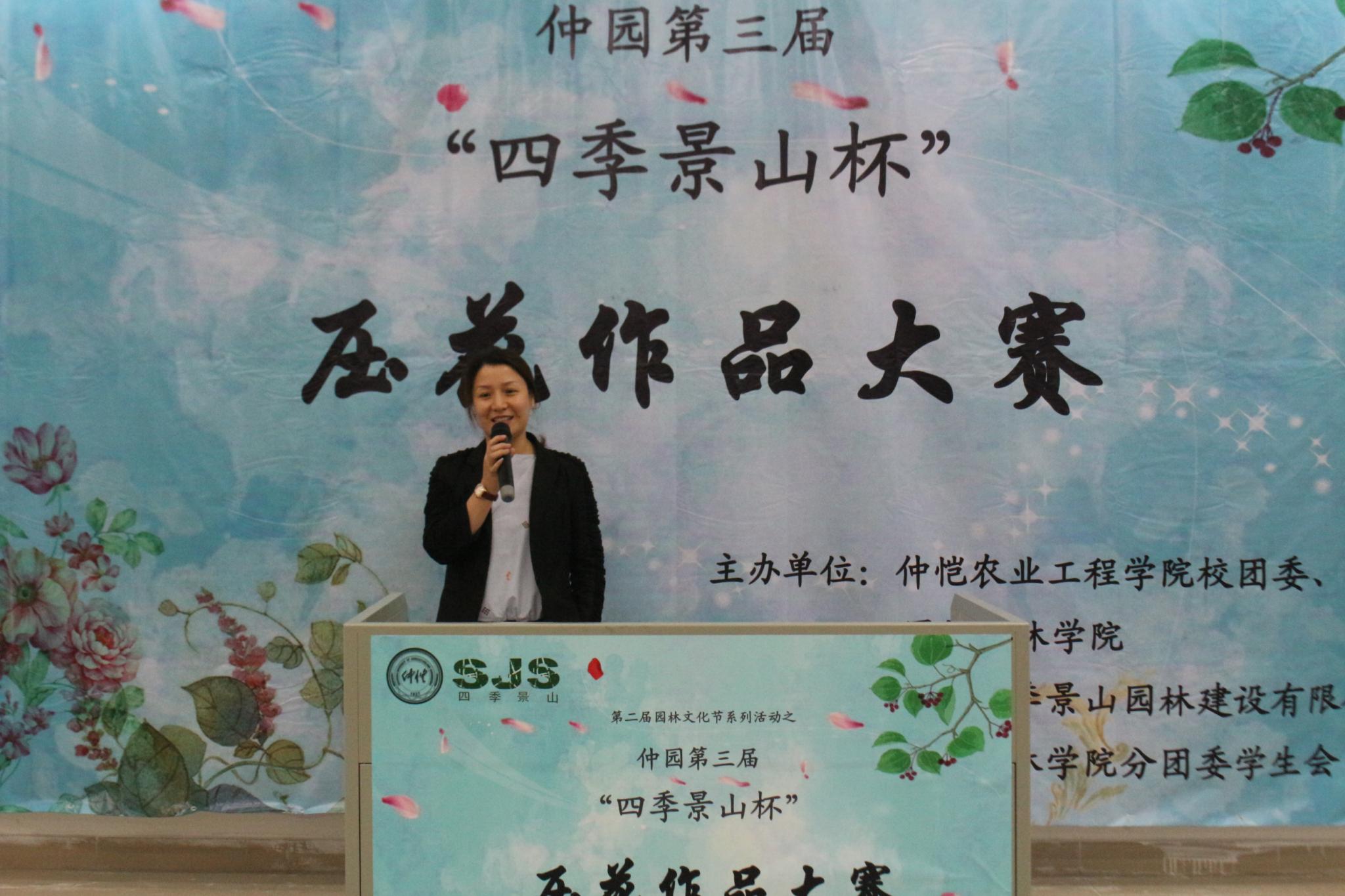 3月30日下午,以“献礼校庆90周年”为主题的仲园第三届"四季景山杯"压花作品大赛在D栋综合楼D2顺利举行。莅临现场的嘉宾有广东四季景山园林建设有限公司柯兰副总经理,m88,m88校团委吴璐媛老师、m88党总支副书记陈晓玲老师,专业教师王凤兰副教授、辅导员刘义存老师、余倩花老师;其中,柯兰女士、王凤兰老师和刘义存老师担任本次大赛评委。