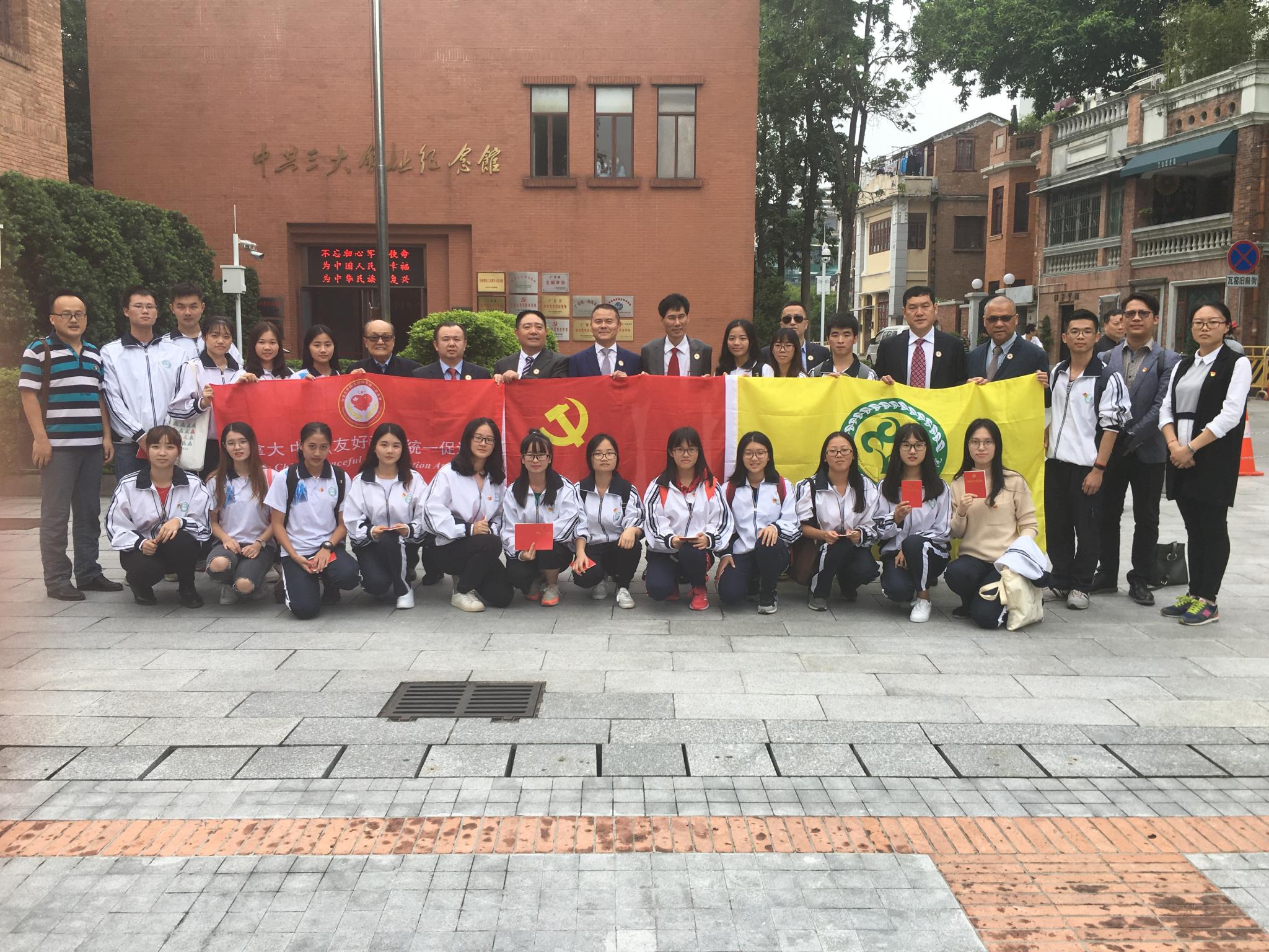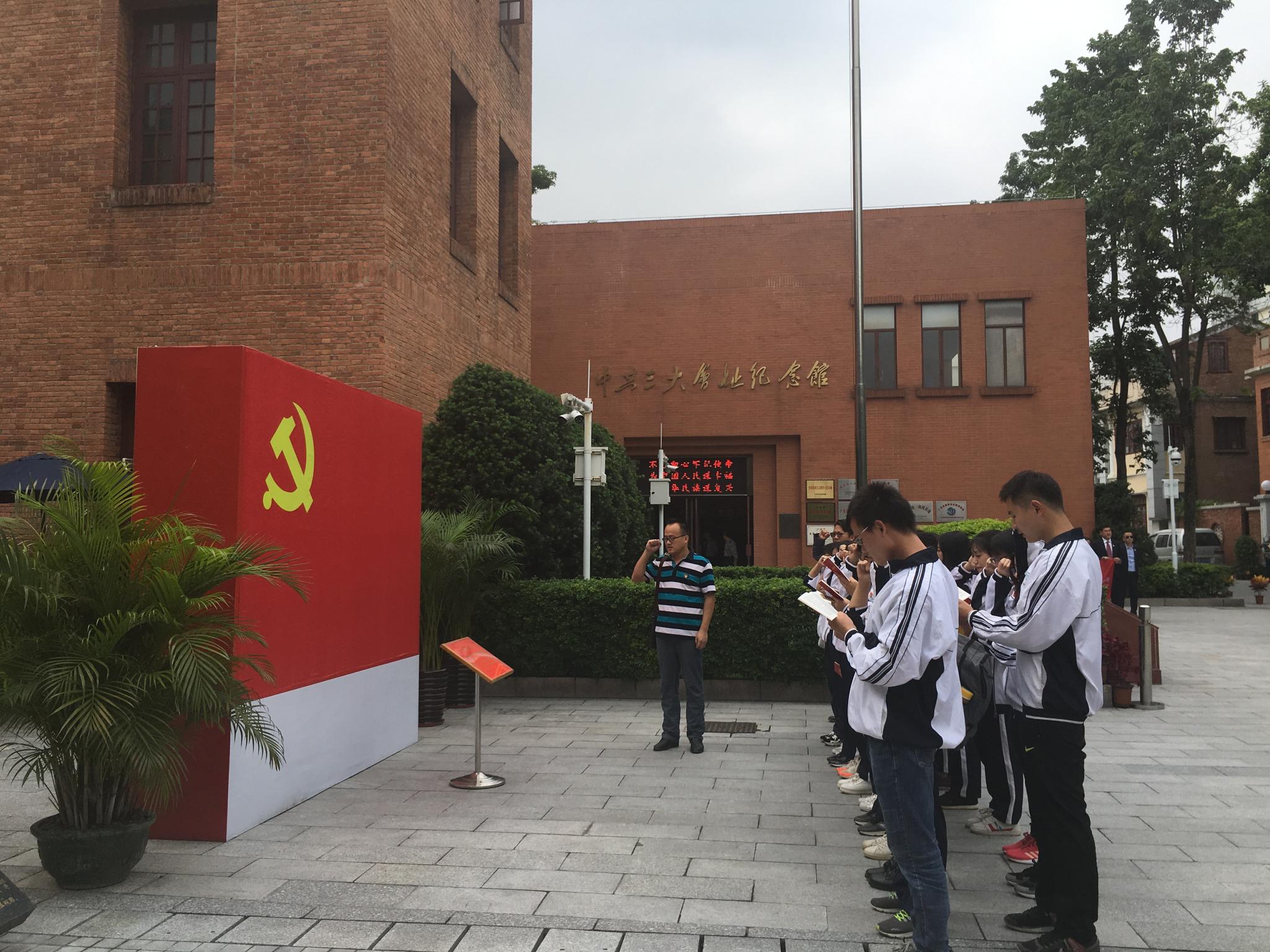 在中共三大会址纪念馆的党旗下,石利刚带领下同学们在党旗下庄严地重温入党誓词。期间,同学们还与到访的加拿大华人团体展开友好的互动。