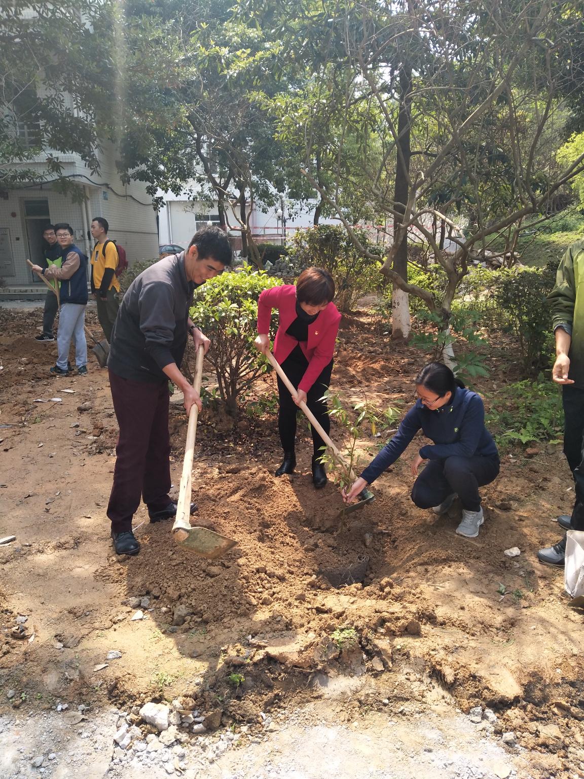 树木发春华,仲园添春色。为增强大学生保护自然意识和热情,3月12日早上,学校植物景观协会在白云校区诸处绿地开展植树活动。参加人员有m88党总支书记陈晓玲,学校总务处副处长李绿雄,学校植物景观协会指导老师、m88副教授胡秀,m88团委书记卢昱静等。