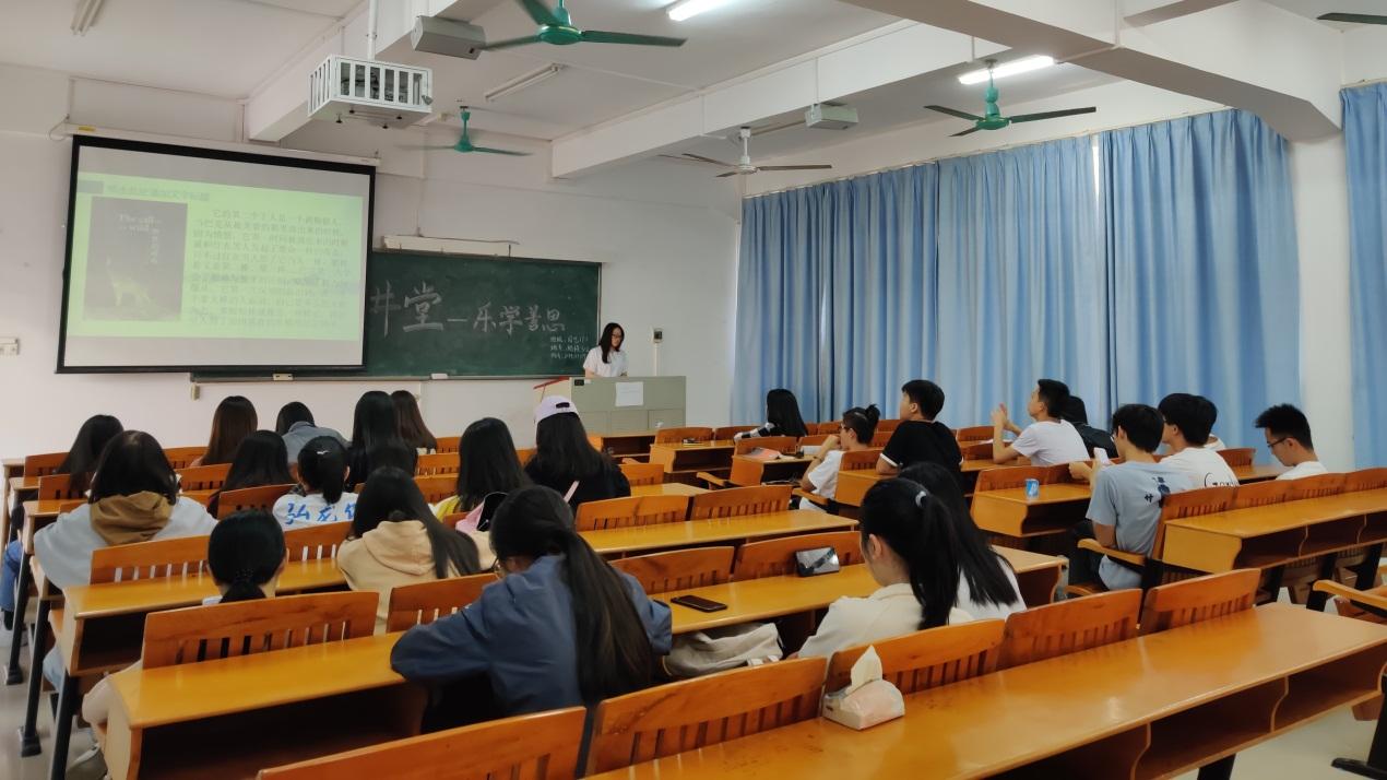 第四位分享人是赵湘湘同学。她分享了一本《野性的呼唤》。这本书讲述的是一条贵宾犬,由温室走向残酷社会的一生。在适应的过程中,巴克身上原始的野性逐渐的复苏,由此思考到在父母的庇护下顺风顺水的孩子们,他们将来也必须要像巴克一样面对社会的残酷,而处于大三的同学们,很快就要步入社会,体会严酷的生存法则,她希望同学们能勇敢的面对未来,挑战未来。