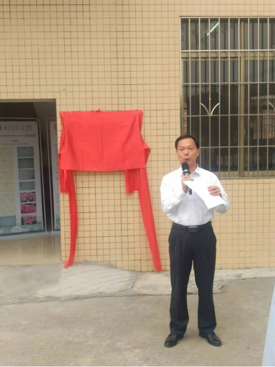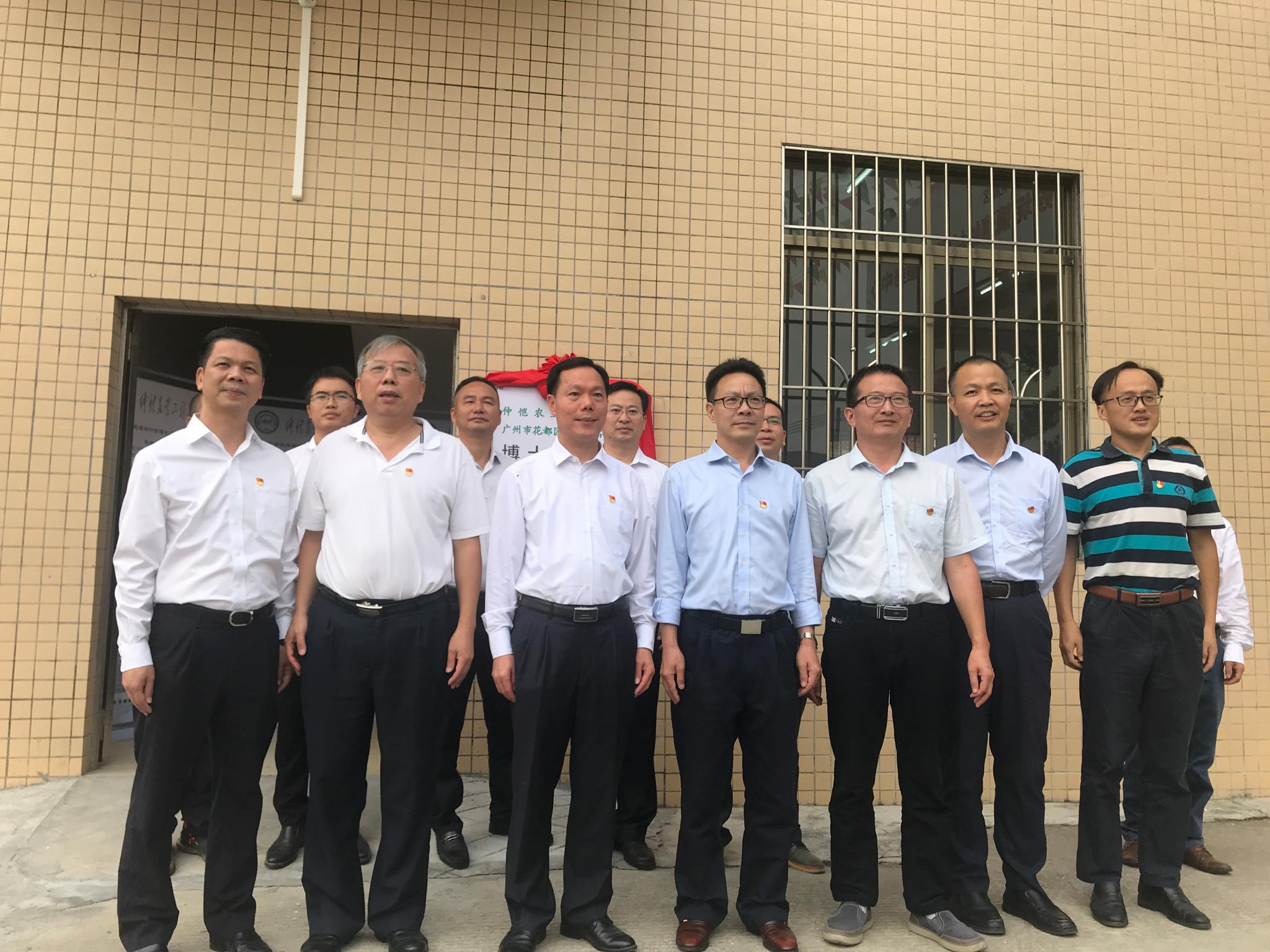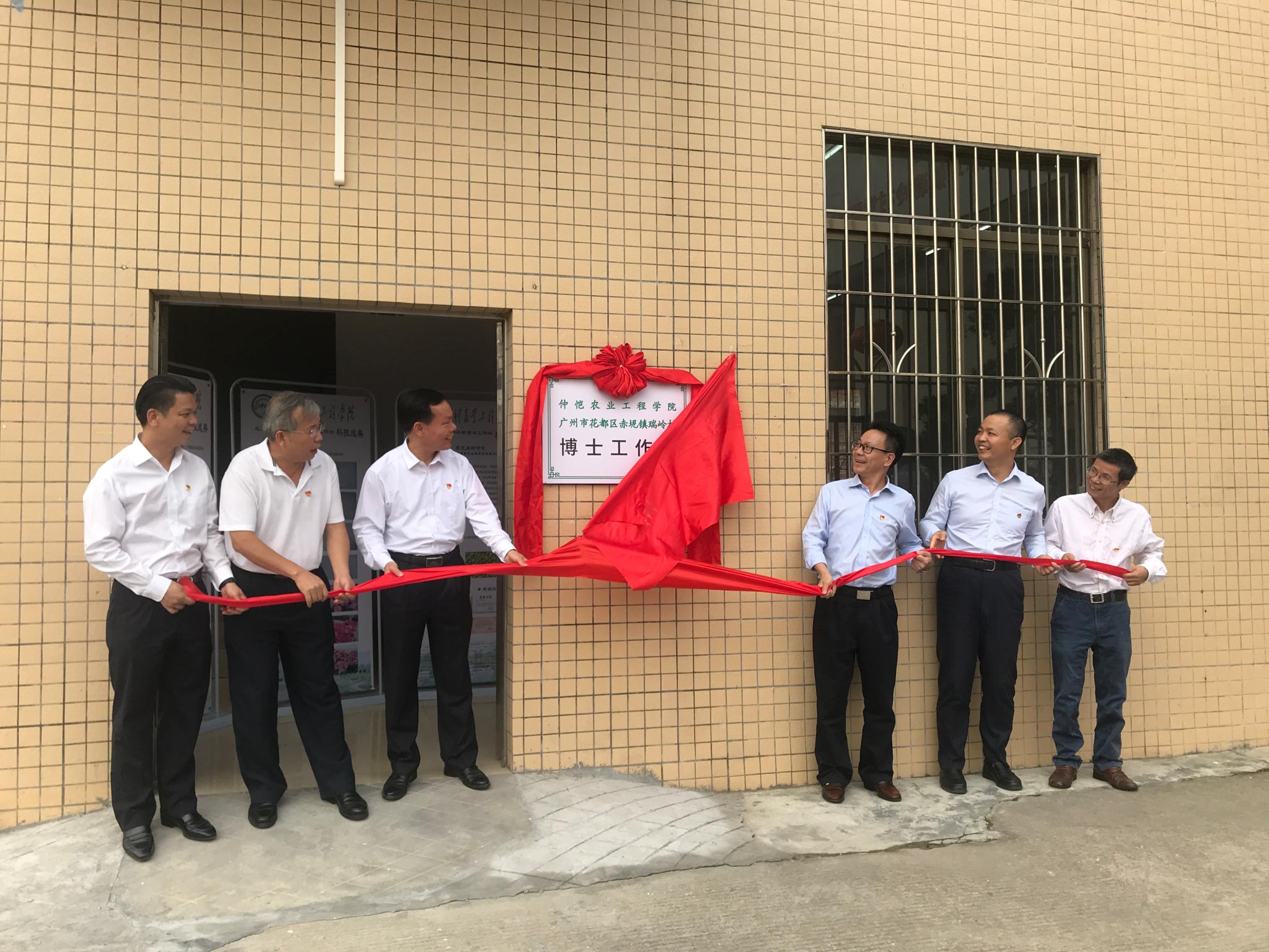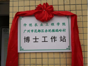 随后,学校领导和花都区领导一起为瑞岭村博士工作站进行了揭牌。