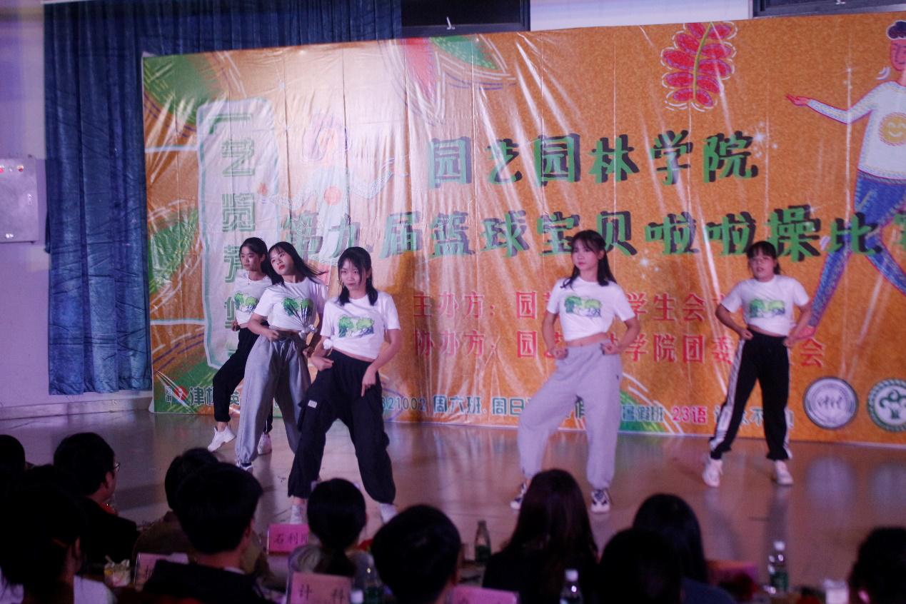 在顽石乐队精彩的开场表演《一个人》后,本次啦啦操比赛正式开始。参赛班级每一位同学都身穿自行设计的班服上台表演,这展现了各班的班风班貌和班级凝聚力。首先上场的是园林191班的《快乐宝贝》,他们以轻快的舞姿、青春的笑容感染着在场的每一位同学;随后园林193班的《Mr.chu》以独特的音乐,别具一格的舞蹈,点燃了在场同学们的热情;园林192班的《失恋野狼快乐跳爵士》体现了既使遇到挫折也笑着面对生活的阳光心态,赢得在场同学们热烈的掌声,将本次比赛推向高潮;草业191班的《Action》为同学们带来了视觉上的盛宴。