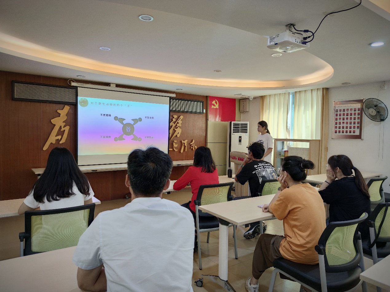 4日上午,服务团队在村委会会议室中开展了关于野生动物的科普宣讲,为村民们科普常见的野生动物及其危害,介绍野生动物保护法的相关内容。