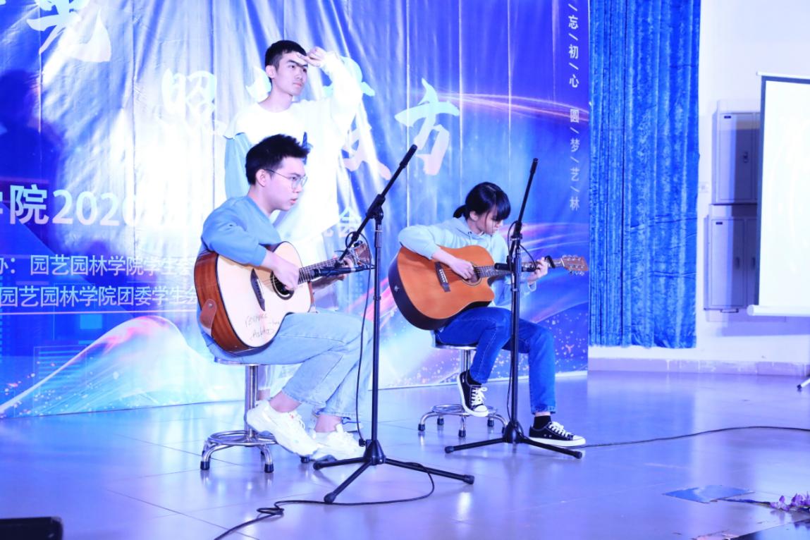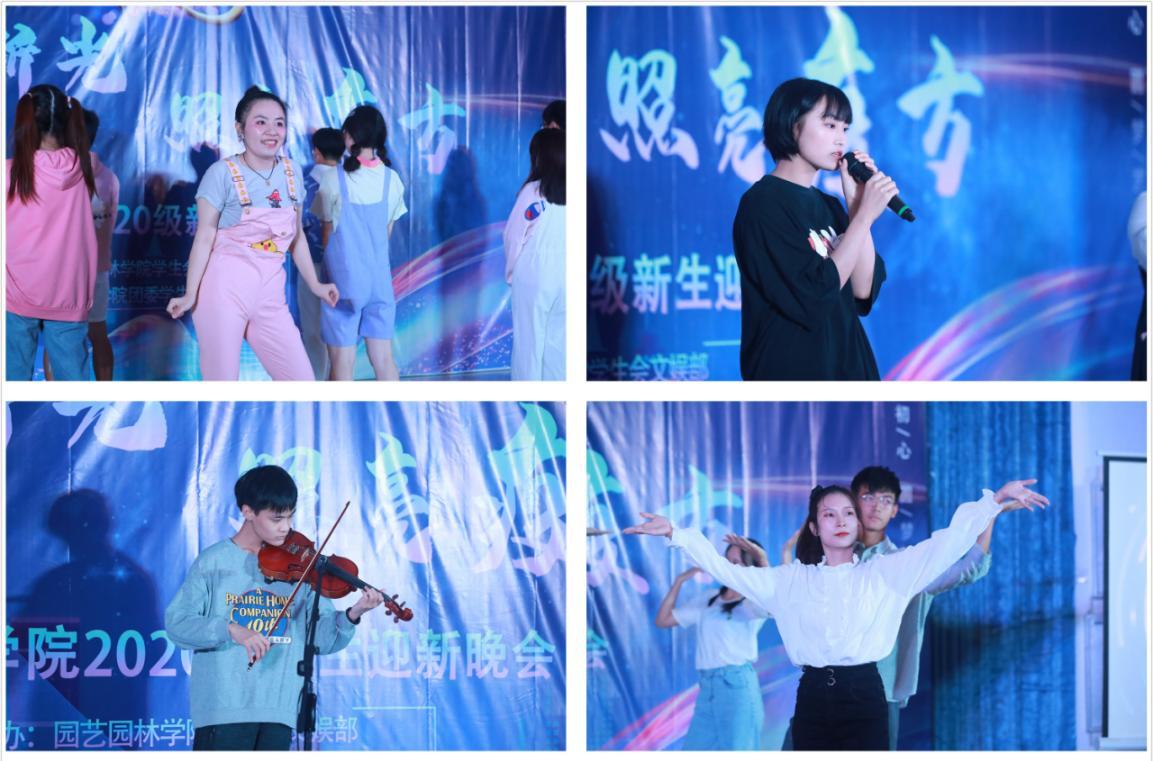 晚会伊始,来自园林192班的蔡佳颖、陈筱艾两位同学凭借舞蹈Break My Heart一下子点燃了在座同学们的热情,全场洋溢起欢快的气氛。随后的舞蹈表演Young、BAAM、歌舞《寄明月》、歌曲《江南》都展现了艺林学子的青春活力。谈静老师不仅带来了歌曲When We Were Young,还和草业201班的同学们一同表演了歌舞《你最最最重要》,以此来表达对新生们的欢迎。2020级新生的助班们也准备了热舞、大合唱、小提琴独奏等精彩节目。校广播台广播剧团的小品《奶茶店之夜》和学院涌梦工作室出品的微电影《疫变之惊》紧扣时代背景,在引发在场同学阵阵欢笑的同时发人深思。晚会的最后,园林205班全体同学和代文魁老师带来口琴伴奏合唱《我的祖国》,琴声悠扬,歌声磅礴,获得满堂喝彩。迎新晚会在热烈的气氛中落下帷幕。