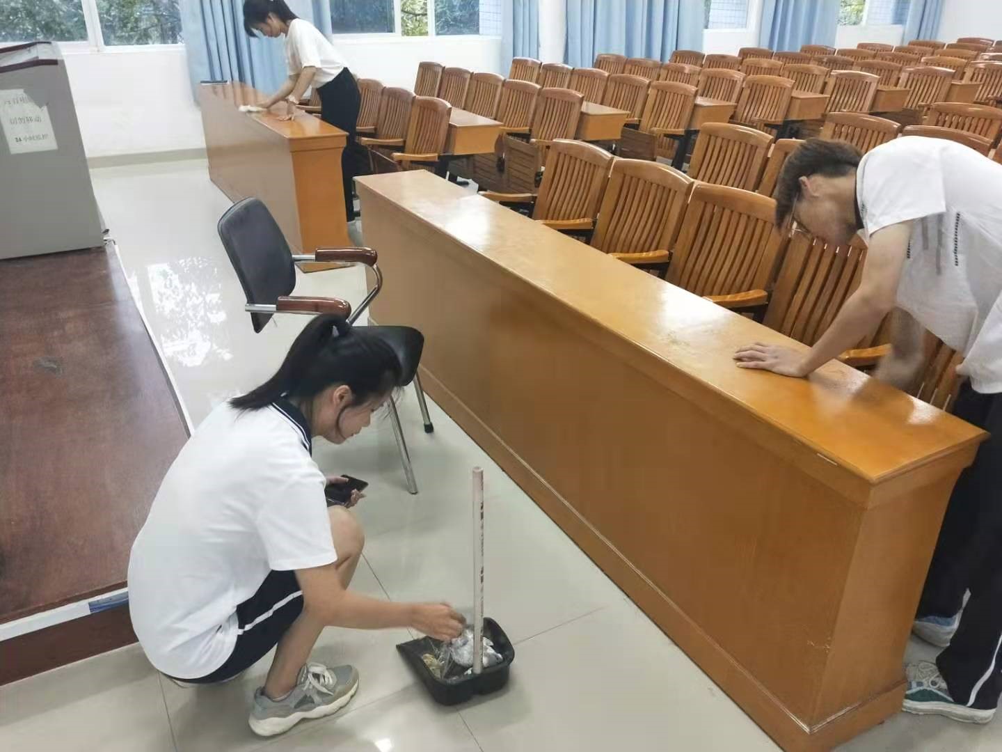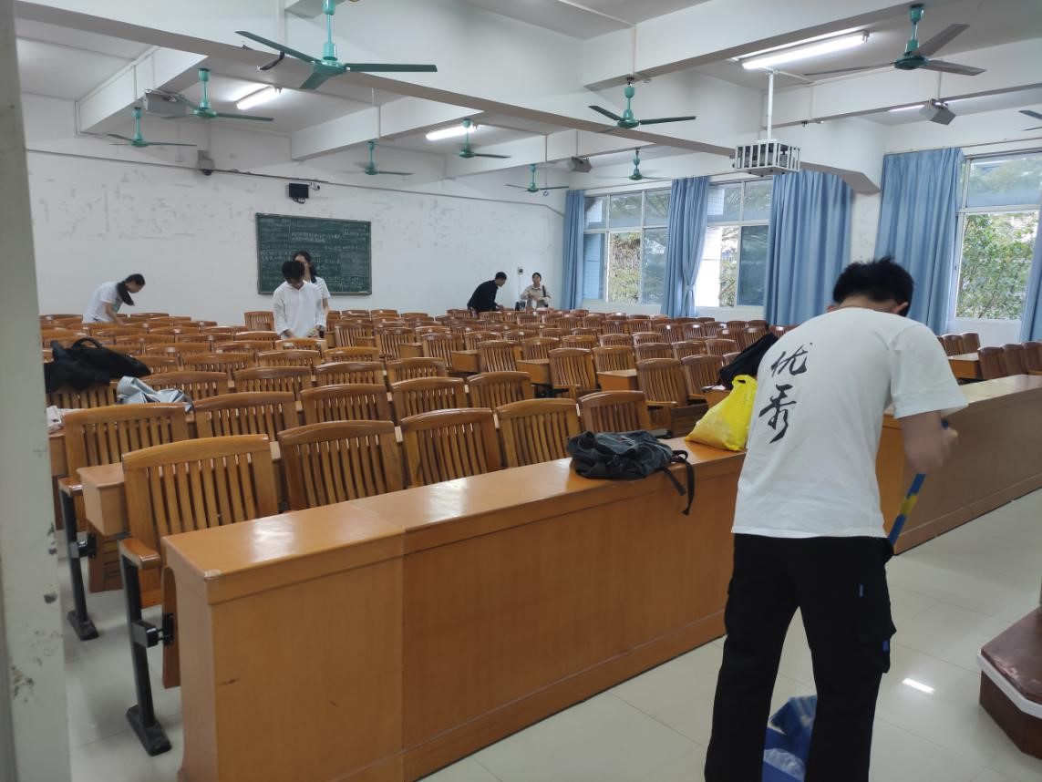 在活动中,入党积极分子们自带清洁工具准时到达自己要打扫的课室。他们分工合作、互相配合,有的清扫地面,有的收拾讲台、擦黑板,有的清理抽屉里遗留的垃圾,有的擦课桌、椅子……学生们热情高涨,以劳动为荣,充分展现了园艺学生党支部入党积极分子不怕脏、不怕苦、不怕累的服务精神,把“全心全意为人民服务”的根本宗旨落实到实际行动中,以优秀党员为榜样,向优秀党员学习,时刻发挥先锋模范带头作用。在大家齐心协力的合作下,终于将教室打扫的干干净净,得到了同学们的夸赞。