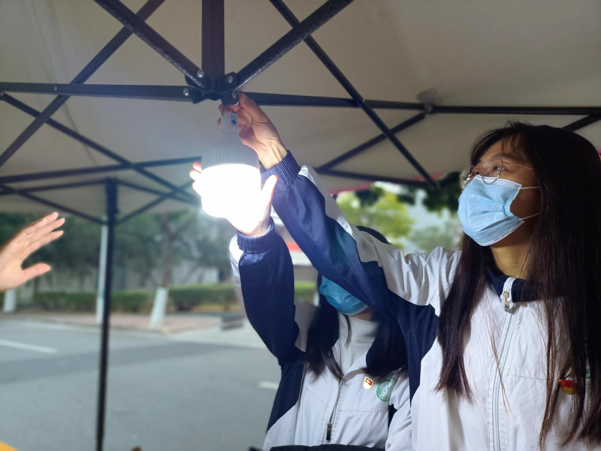 为使学院2020级新生在军训期间有良好的照明环境,1月17日,园艺党支部开展了“党员先行,助力新生军训”的活动,党员们在学院军训大本营帐篷处安装上了可移动灯泡。