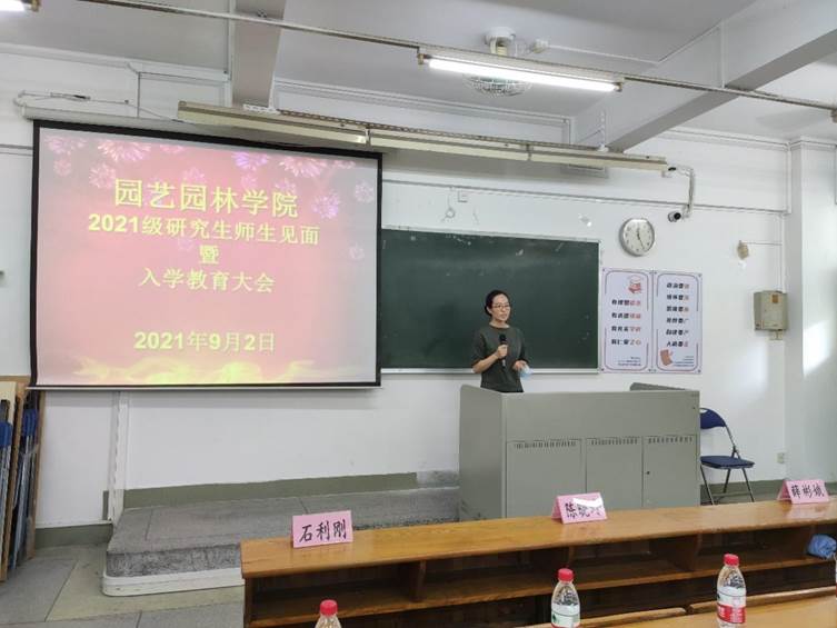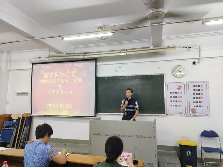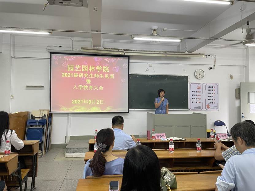 陈晓玲代表学院全体师生对2021级研究生新同学的到来表示热烈欢迎和衷心祝贺,简要介绍学院的基本情况、学科特色、培养目标以及近年来取得成绩,她强调同学们在中国共产党成立100周年重要的历史节点成功考研深造,使命光荣,责任重大,要不负韶华,不负时代,勇担起中华民族复兴大任,并向新生提出四点希望:一是严格遵守疫情防控要求,确保严而有序,健康安全;二是要学会感恩,坚守诚信,锤炼品格,努力成长为品学兼优、德才兼备的有德青年;三是树立目标,合理规划,勇于实践,自觉成长为有理想、有本领有担当的有为青年;四是志存高远,担当作为,要立大志、成大才、担大任,自觉成为“一懂两爱”、服务乡村振兴、推进农业农村现代化的有志青年。