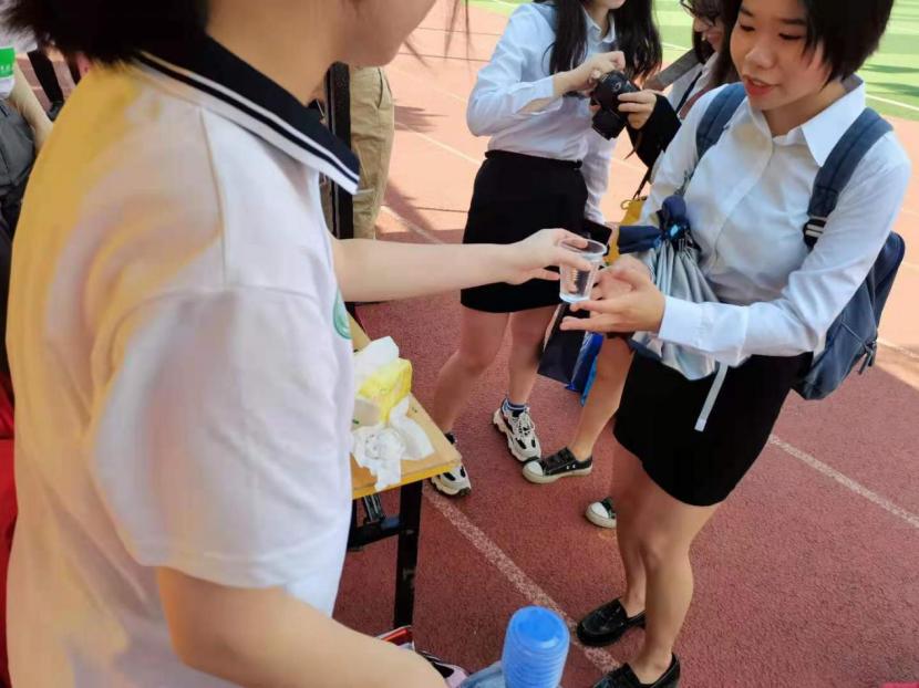 接下来是守摊工作,包括布置大本营,明确大本营物品位置,及时为师兄师姐们提供服务,保证场地卫生整洁,做好交接工作。学生党员和积极分子不畏烈日炎炎,在大本营维护服务秩序,积极主动服务毕业班师兄师姐,热情地给师兄师姐递水。