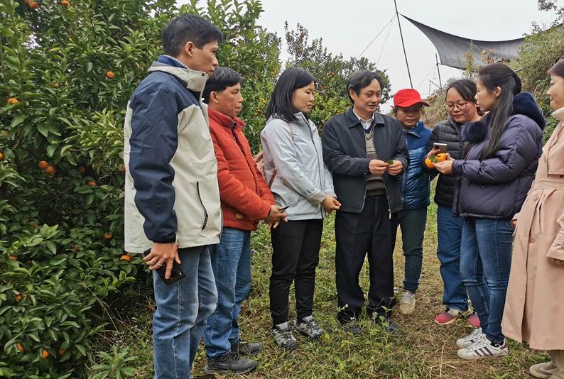 果树团队负责人黄建昌教授以老带新,经常深入田间地头指导工作,既把专业知识与实践相结合,同时也带领年轻老师深入基层,了解产业发展,凝练科学问题,更好的开拓科研思路。宋雯佩、李彩琴等同志对保花保果和预防裂果叶面肥喷施效果也进行现场调研,使用效果良好。通过本次科技下乡、乡村振兴服务,为镇安镇柑橘标准化示范园和产业园建立提供强有力的支撑,也为进一步开展产学研合作打下坚实的基础。