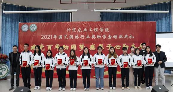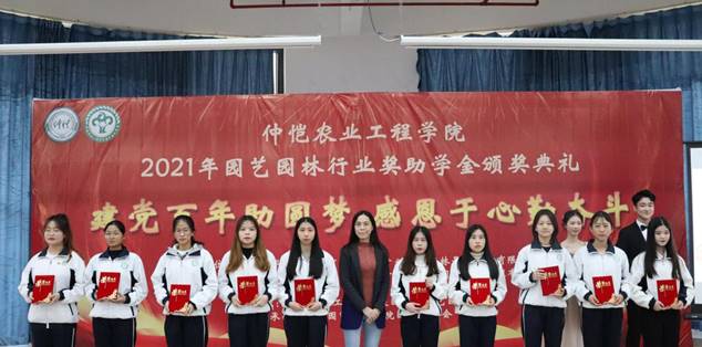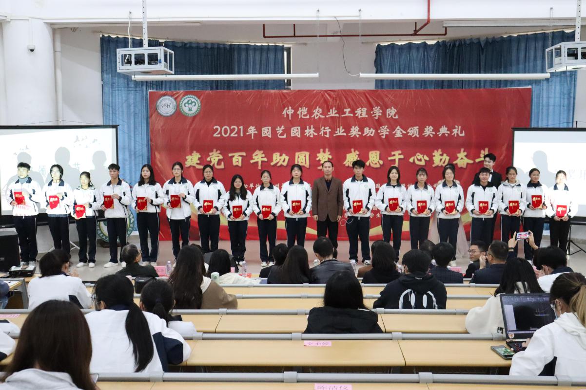 为庆祝中国共产党成立100周年,进一步推进学校党史学习教育深入开展,12月23日下午,由学校团委主办、m88团委承办,主题为“建党百年助圆梦 感恩于心勤奋斗”——m88,m882021年园艺园林行业奖助学金颁奖典礼在白云校区D栋小礼堂隆重举行。学校党委副书记邱亚洪、广州普邦园林股份有限公司首席专家谭广文、人才发展主管黄绍音、广州茏腾园林景观设计有限公司品牌经理翁桂涛、生态景观所三所所长韦怡凯、品牌专员李翠琦、广州市白云园林建设工程有限公司风景园林施工工程师李秀华、广州市尚景生态景观有限公司董事长方中健、副总经理邓剑煊、设计总监陈洁、学生处处长李伟东、学校团委书记熊友华、m88党委书记陈晓玲、副书记石利刚、副院长郭春华等领导嘉宾莅临指导。园艺园林行业奖助学金获奖同学以及各班学生代表共150余人参加本次颁奖典礼。