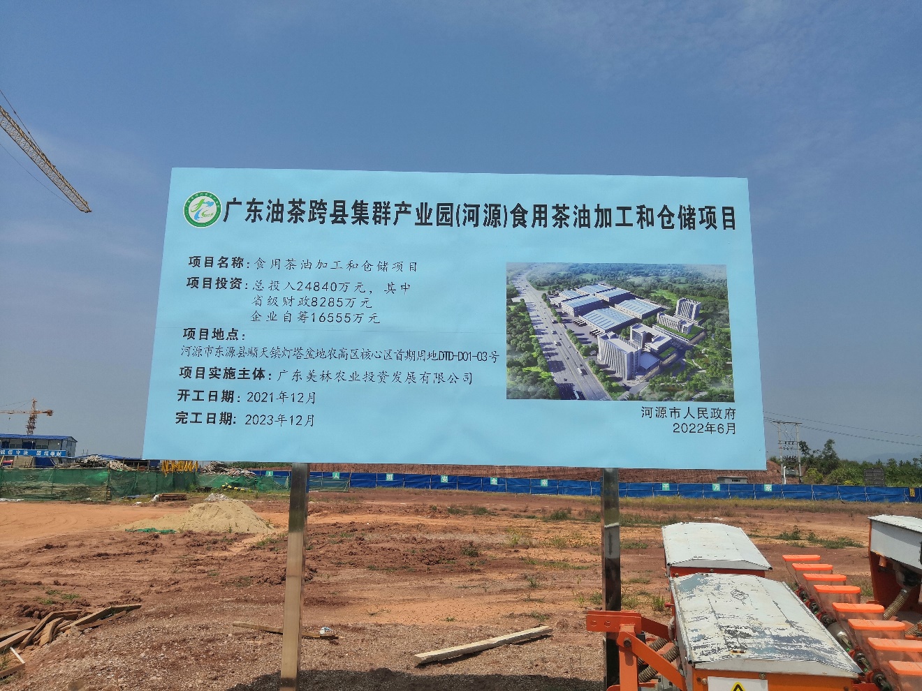 调研团队先到产业园食用茶油加工和仓储项目建设现场与项目实施主体广东美林农业投资发展有限公司进行交流,就项目发展规划和未来技术需求展开探讨。
