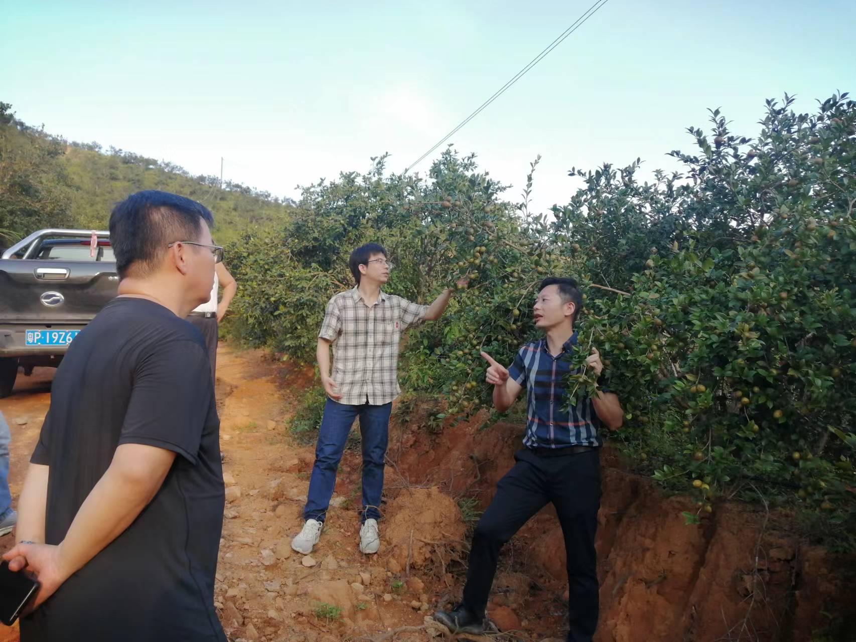 最后,调研团队赴东源县大地农林集团有限公司柳城种植基地指导工作。该基地由我校油茶科技创新团队依托“油茶低改专用肥及水肥一体化配套技术推广示范”等项目开展了技术支持。项目建设方表示,应用我校推广的水肥一体化配套技术以后,林地增产效果明显,目前准备进行第二期新增300万元建设水肥一体化标准化油茶种植示范园,希望我校科技特派员继续给予技术支持。