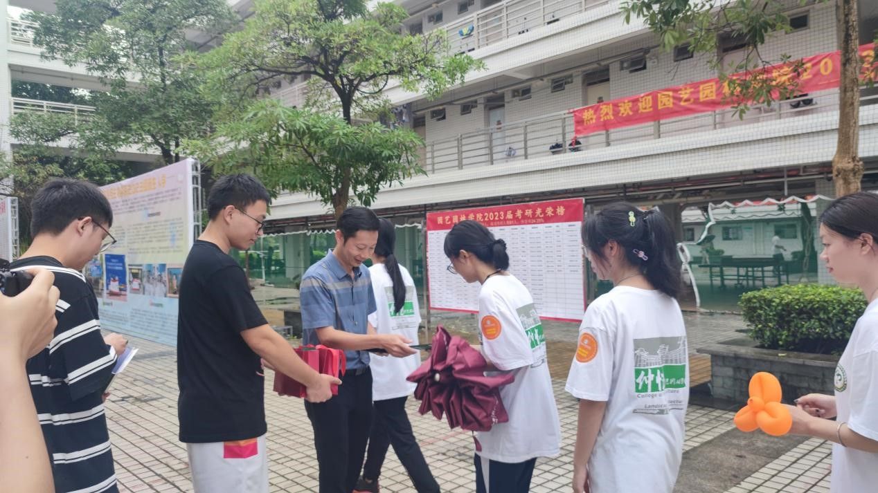 迎新当天恰逢教师节,同学们特地为老师们准备了鲜花,显示了浓浓的师生情谊。同时,为感谢迎新工作人员、志愿者们的辛勤付出,李永泉院长为每位迎新同学及志愿者赠送油茶团队研发的高科技面膜。师生互赠礼品,情意浓浓,呈现一幅温馨和谐的美好画面。