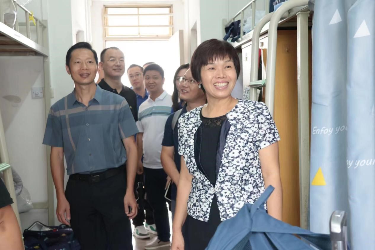 报到当天,学院党政班子、辅导员、班主任等一行走访了2023级新生宿舍。学院党委书记陈晓玲带领大家逐一走访新生宿舍,了解同学住宿环境和存在困难,叮嘱同学们尽快适应新环境,投入新生活,遇到问题要善于沟通,及时反馈。茫茫人海,相聚是缘分,她希望同学们能相互包容,融洽相处,度过充实丰富的四年大学生活。