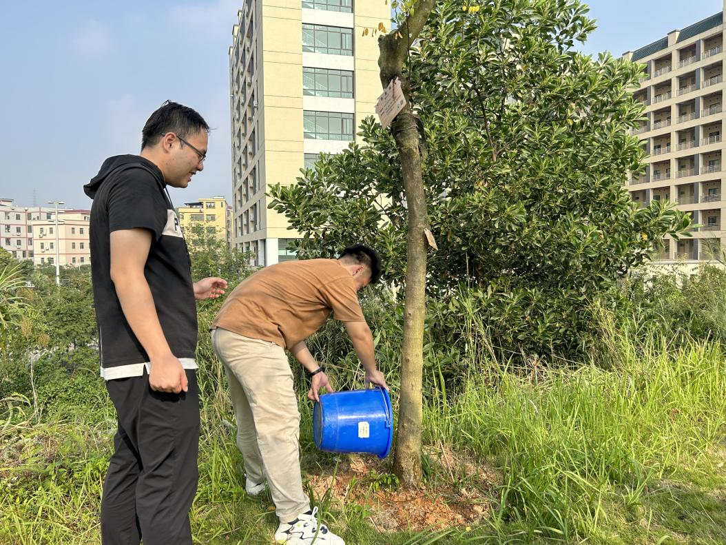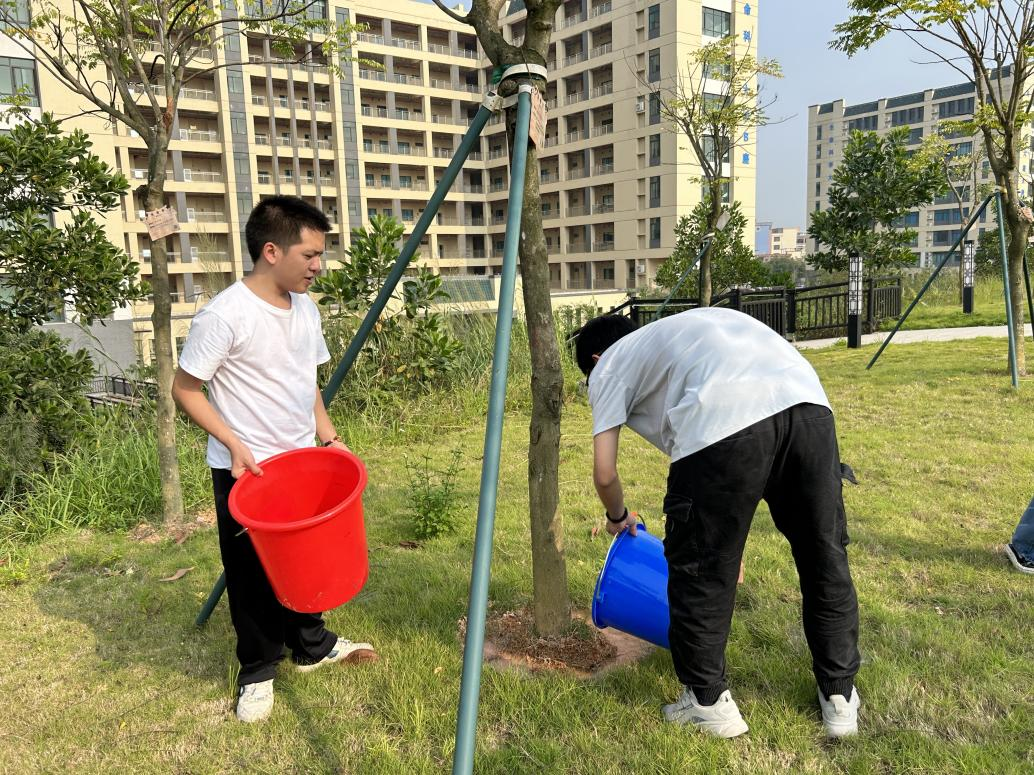 随后,学院领导及党员教师们对青年林的树牌进行了更新和修缮,并为青年林进行浇水灌溉。