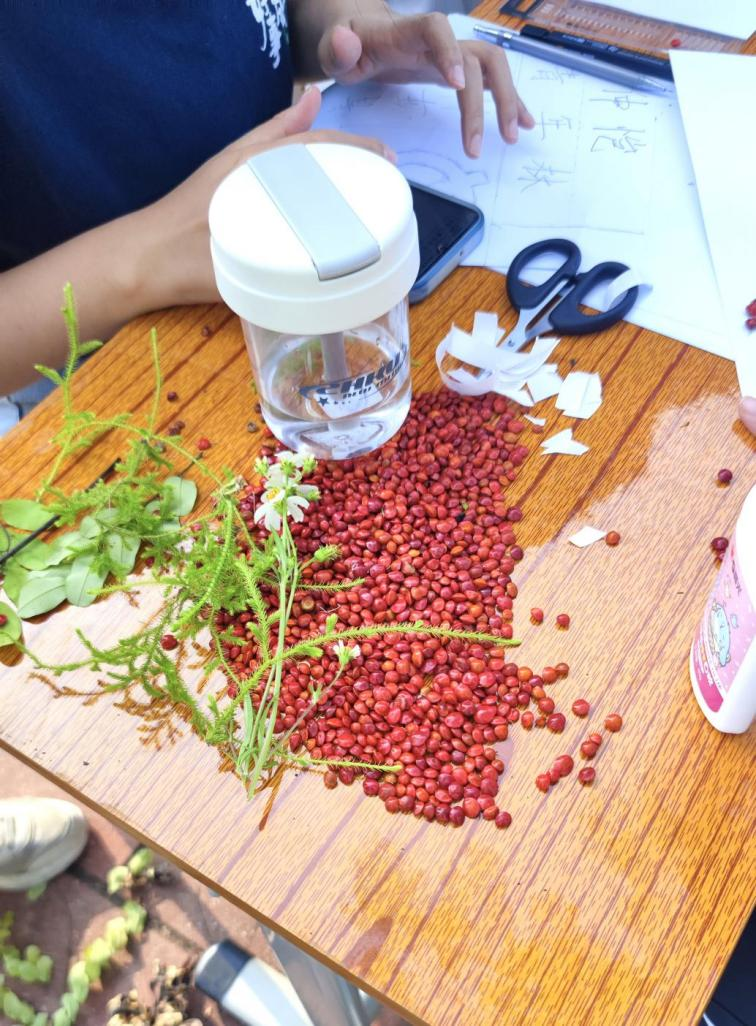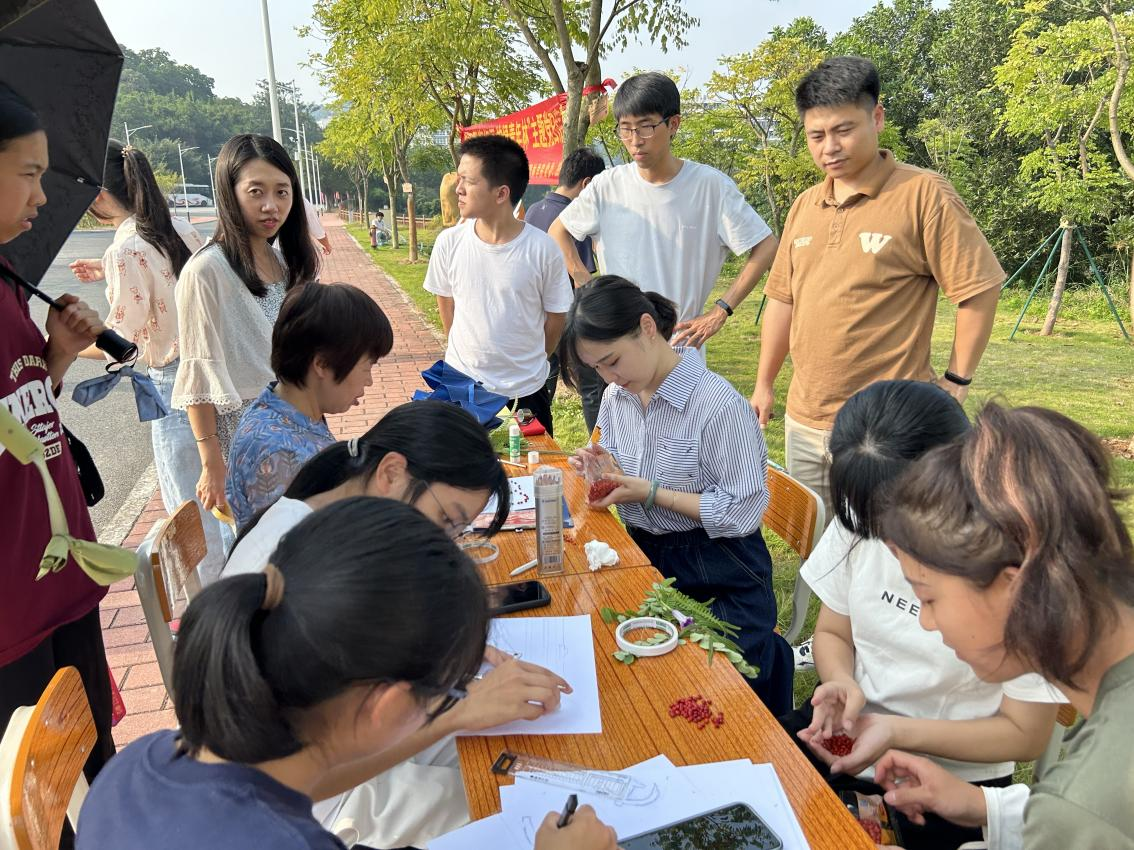 正值海红豆成熟季,学院领导、党员教师以及学生党员一同对林区内的红豆果实进行采摘,通过手工DIY创意活动进行作画,借海红豆“相思”之意,感谢校友心系母校之情,进一步增进了学校与校友之间情感联结。