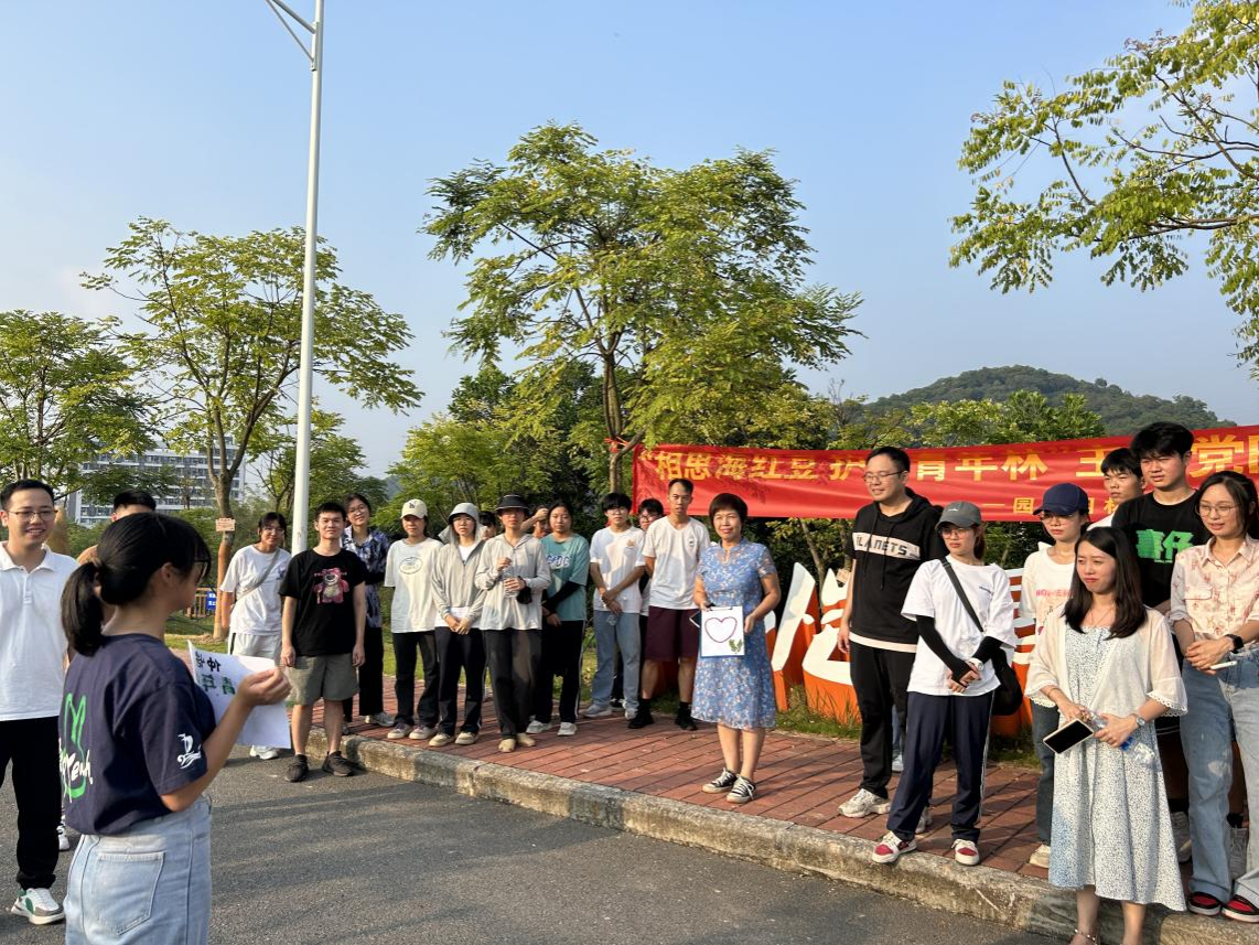 最后,陈晓玲为本次党日活动作总结。陈晓玲对校团委的支持与参与表示感谢,强调这一活动不仅是学校与校友间情感的传递,更是深入学习贯彻习近平生态文明思想的重要一课,鼓励各位学生党员以及入党积极分子要以身作则,爱护好我们的绿水青山,为广东的绿色未来贡献更多的力量,让“绿美广东”建设更上一层楼,实现“大地植绿、心中播绿、全民享绿”的美好愿景。