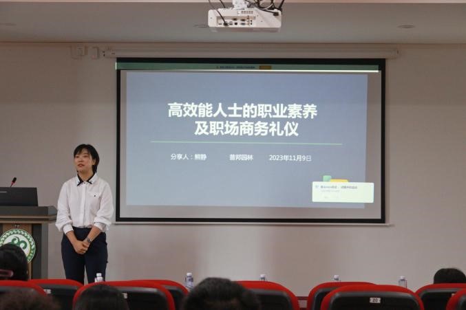 会议伊始,熊静老师针对应届生在职场中的行为规范以及职业素养作了详细的讲解,为同学们提供了丰富的职场经验,帮助同学们对自身职业规划有更清晰的认识。同学们聚精会神地听讲,孜孜不倦地汲取培训会给予的“养分”,受益匪浅。