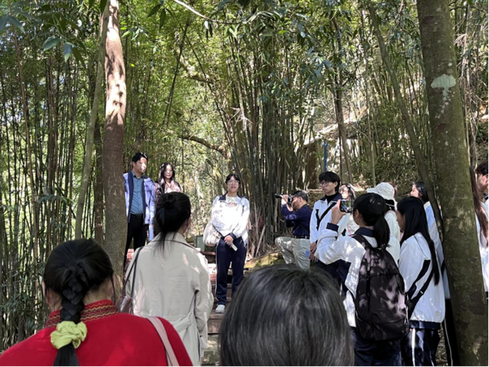 石门国家森林公园森林覆盖率达98.9%,有华南地区仅存的原始次生林1.6万亩,被称为北回归线的一片绿洲,森林内保存着复杂和稳定的生态系统及许多珍稀野生动植物。活动中,教工第一党支部书记涂攀峰带领大家学习习近平总书记在全国生态环境保护大会上的重要讲话精神,强调生态文明理念与园艺专业密切相关,希望大家牢固树立和践行绿水青山就是金山银山的理念,将专业知识与建设绿美广东、建设美丽中国相结合,在推进人与自然和谐共生的现代化过程中发挥自己的专业优势。