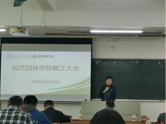 随后,学院领导班子结合分管的工作逐一部署了新学期工作安排。李永泉副院长(主持工作)领学黄坤明书记在广东省高质量发展大会上的讲话精神,指出学院的高质量发展需要强大的人才支撑,2024年人才引进工作极为关键,希望大家积极举荐国内外高水平人才。刘小冬副院长从本科教学工作方面,指出一是将教学放在第一位,严抓学风教风,狠抓教学质量;二是按照本科教学评估指标体系准备好各项材料;三是提醒各位教师做好开学准备工作,及时领取教材并提交实践计划。郭微副院长从科研及研究生教育方面,指出要对照学院2024年工作要点,鼓励大家积极申报国家基金,持续跟进“百千万工程”农村科技特派员工作,提升学院研究生教学质量和科研水平。王红山副书记从学生工作方面,指出要采取措施保学生安全返校;希望全体教职工为毕业生就业拓资源、出实招,推动2024届毕业生高质量充分就业;动员大家积极参与学院征兵工作,号召有潜在当兵意愿的学生报名入伍。