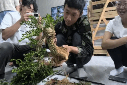 森宇盆景园林文浩热情介绍了园区的建设情况和发展规划,胡秀教授团队调研了罗汉松盆景产业的发展现状及发展前景,交流了罗汉松在品种选育、栽培技术等方面存在的问题。同时,现场观摩了雀舌黄杨的修剪造型工作,团队成员表示受益匪浅,认为这是一堂生动的盆景学课程,加深了对盆景艺术造型能力的理解。