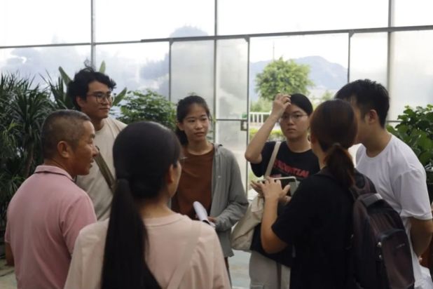 8月10日,在胡秀教授和金石镇花卉协会会长翁勇金的带领下,仲花焕景先锋队再次来到花卉园区,对园区棚户开展走访调研。经过详细调研及分析,团队发现棚户内部存在空间杂乱,花卉分区不明显、空气流通不畅、光照条件不佳等问题。通过与商户的交流得知,园区改造要充分满足销售需求,协调好展示与销售空间。胡秀教授指出,要充分考虑商户需求,结合场地情况对场地进行改造升级,提升晋君路周边花卉园区整体形象。