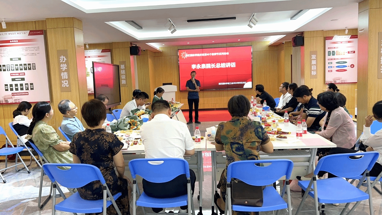 最后,李永泉院长作总结讲话,感谢学校各职能部门的支持和指导,分享自身成长的收获与感悟,勉励青年教师以勤快、踏实、刻苦的精气神接续奋斗,为学校高质量发展奉献力量。
