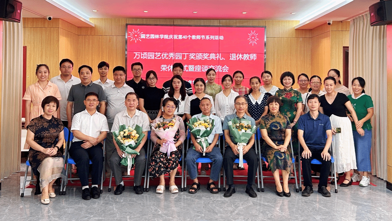 接着举行隆重的颁奖典礼,刘小冬宣读《关于颁发2022年万顷园艺优秀园丁奖的决定》;尹国强和李永泉为在教学科研、党建工作、青年教师教学竞赛等获奖的教师颁奖。