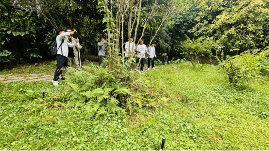 学生在进行植物测量