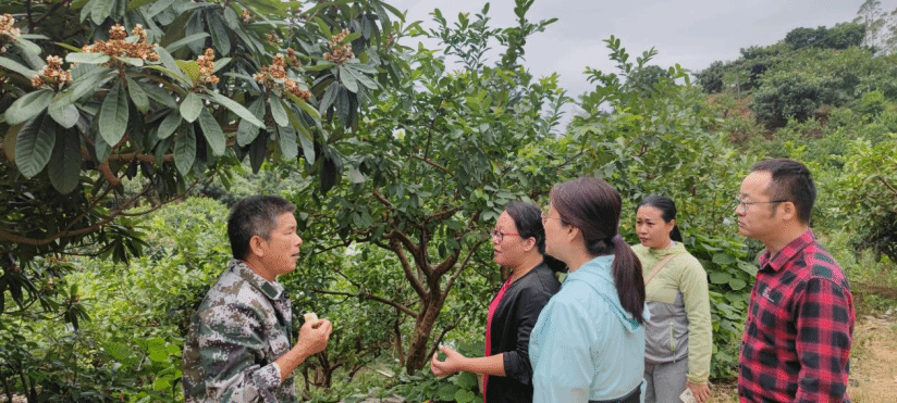 会后,特派员团队一行来到枇杷、番石榴和青梅果园进行现场调研,进一步了解当地水果种植管理现状和困难。通过与种植户交流,特派员团队发现果园存在品种单一、品种退化、种植密度过高、枝条太密、结果率低、施肥不足等问题。
