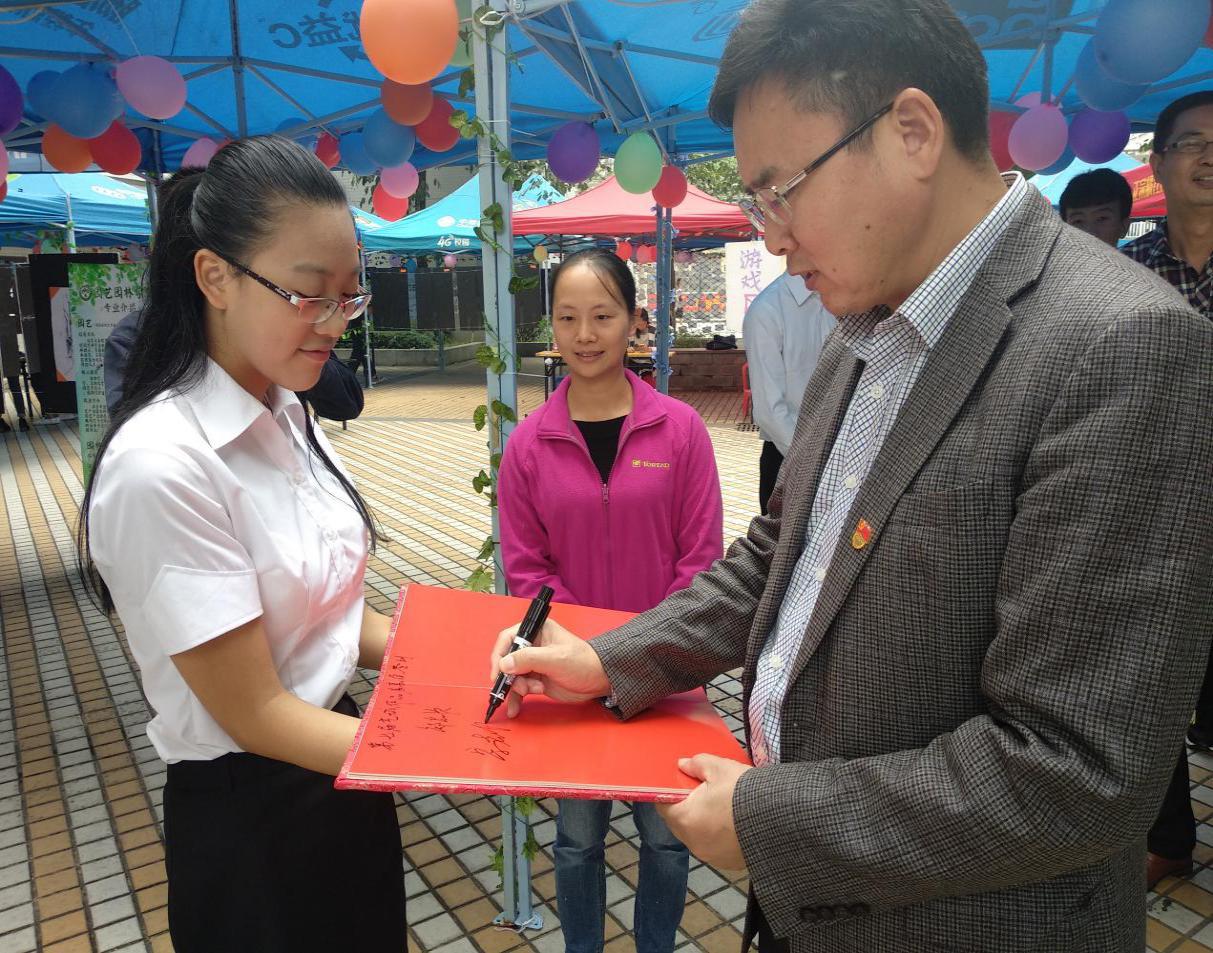 11月17日至18日,由m88、城乡建设学院联合主办的“第七届艺城作品展”在白云校区学生公寓5、6栋之间举行。11月17日中午,学校党委书记宋垚臻到现场观看作品展,与老师和同学们进行亲切的交流。宋书记高度评价举办艺城作品展的深远意义,肯定了师生们对本次作品展付出的努力。他强调艺城作品展不仅要充分展示园艺、城建两个学院的优秀作品和教学成果,活跃校园文化气氛,同时也要在活动的组织过程中发挥学生干部的积极主动性,让学生干部在大学活动中充分锻炼自己、提升自我,全面发展,实现校园文化品牌活动正能量的最大化。