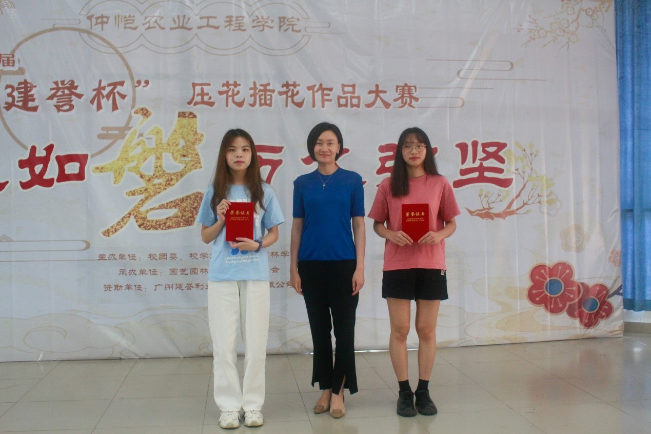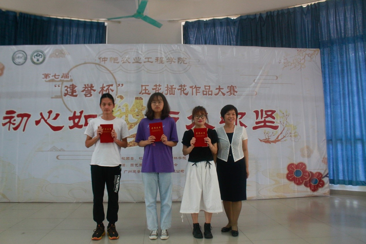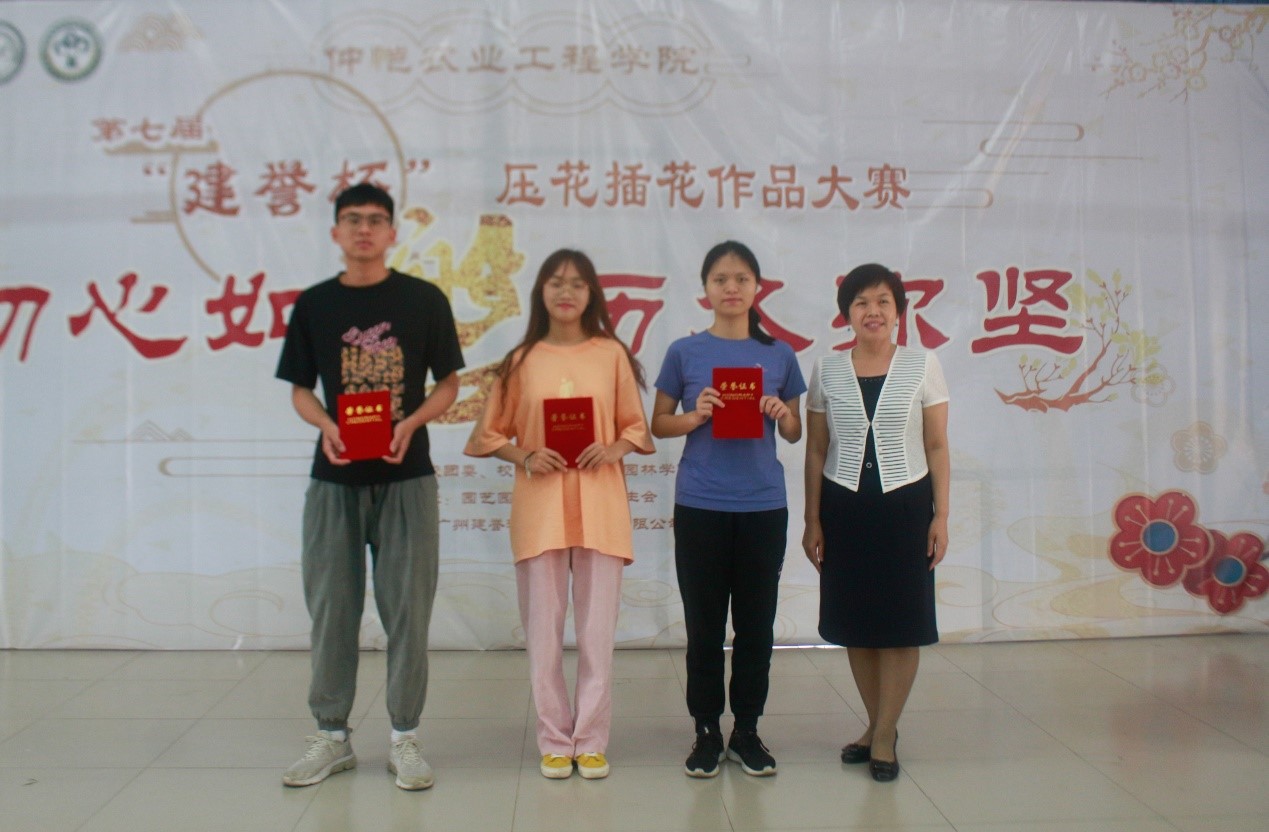 为庆祝中国共产党建党100周年,回顾党的奋斗历程,讴歌党的光辉业绩,4月24日下午,由校团委主办,m88承办的第七届“建誉杯”压花插花作品大赛在D1小礼堂隆重举办。本次大赛以“初心如磐,历久弥坚”为主题,在给大家带来美的盛宴的同时,引领大家追寻红色记忆,激发爱国热情。出席本次大赛的领导嘉宾有:校团委副书记贺岚,广州建誉利业建设发展股份有限公司副总经理纪庄、人事行政总监陈笑儿、行政主管朱颖儿,m88党总支书记陈晓玲、副书记石利刚,辅导员黄慧娟。轻工食品学院党总支副书记李汉雄、m88园艺系副主任王凤兰副教授、张施君副教授、罗红辉副教授担任本次大赛的评委。