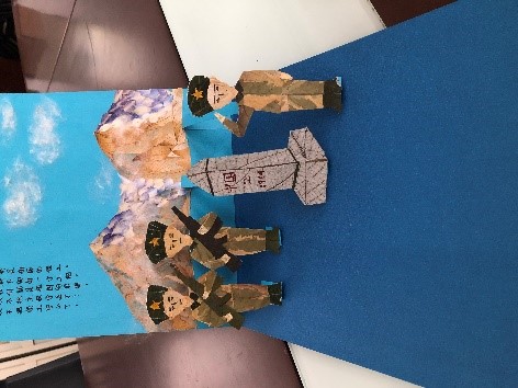 第一组出场的是17812队的压花作品《思想浪潮》,创作理念来源于当下热播的党史剧《觉醒年代》,作品以大量的红色非洲菊花材作成红色的海浪,而作品中包含的人物便是我国马克思主义传播者的先驱李大钊先生,红色海浪带来强烈的视觉冲击,同时呼应作品标题“思想浪潮”。花野队带来的《脱贫花开,美丽乡村》带我们走进宁静清新的乡村,作品采用了大量绿色花材突出春天的味道,这不仅是节气上的春天,更是我国迎来面对脱贫攻坚难题上的春天。压花组的17-812一队带来作品《我站立的地方是中国》,立体贺卡的形式成为了作品的一大亮点,作品主要由高山、蓝天白云和边疆战士构成,作品背景为2020年发生在加勒万河谷的中印边境冲突,作者借此高山喻意军人心中对保家卫国的坚定决心,也以蓝天白云表达了对壮烈牺牲军人的怀念与感激。
