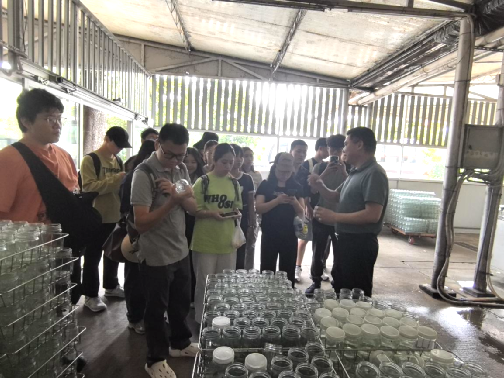 师生们首先前往广州花卉研究中心从化基地,在曾伟达高级农艺师引领下,参观了花卉组培生产、新品种展示、种苗和盆花标准化示范生产等现场,见证了红掌等高档花卉从组培苗到成品的科技化培育过程,感受了现代农业的规模化与高效化,科技对农业高质量发展的巨大推动力。