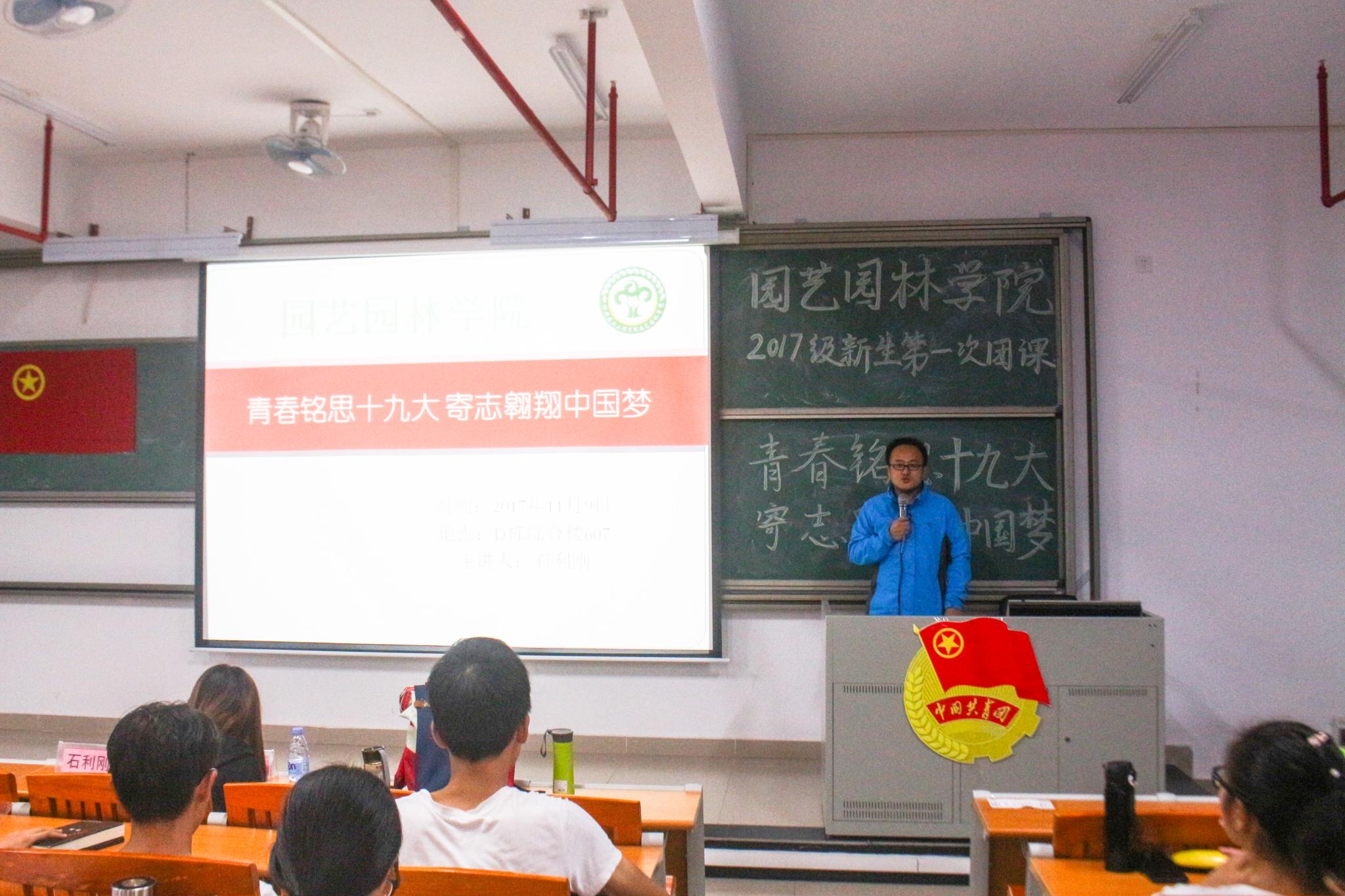 11月9日下午,m882017级新生第一次团课在白云校区D栋综合楼607室顺利举行。本次团课由园林园艺学院党总支副书记石利刚老师主讲,主题是“中国共产党的历史与经验”,该院2017级全体新生参加了此次团课。