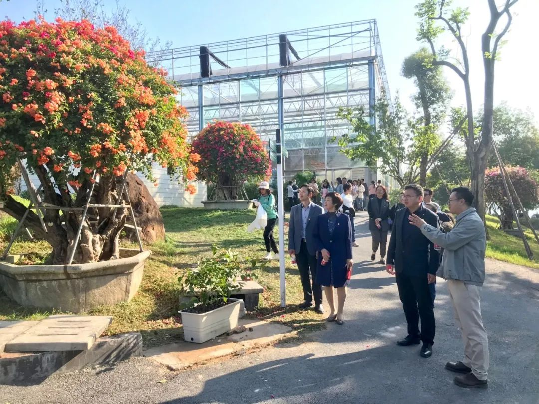 郑志民董事长对宋书记一行的到来表示热烈欢迎,详细介绍马岭观花植物园规划、建设情况以及未来发展蓝图,园区总规划3000亩,是广东省级现代农业产业园,涵盖观花植物种质资源引育、科研、生产、展览、农旅休闲等功能为一体的乡村振兴重点项目,现已建成三角梅主题花园,面向社会开放。与会人员结合学科专业,在校企协同、绿美广东、种质资源保护、园区规划等方面进行了深入交流,表示将加强校企协同,携手共建花卉之都,打造绿美广东生态建设的样板。