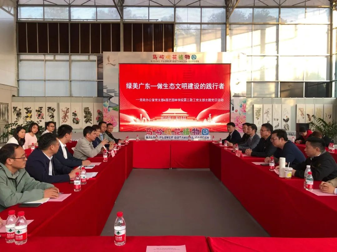本次主题党日活动围绕绿美广东生态建设的主题,在马岭观花植物园引种中心开展。在学习交流会上,与会同志一起认真学习习近平生态文明思想、习近平总书记在全国生态环境保护大会上的重要讲话精神以及《中共广东省委关于深入推进绿美广东生态建设的决定》相关专题内容。大家表示,习近平总书记的重要讲话系统部署了全面推进美丽中国建设的战略任务和重大举措,为进一步加强生态环境保护、推进生态文明建设提供了方向指引和根本遵循,要立足岗位模范带头,积极发挥作用,努力争当绿美广东生态建设以及绿美校园的建设者、推动者。