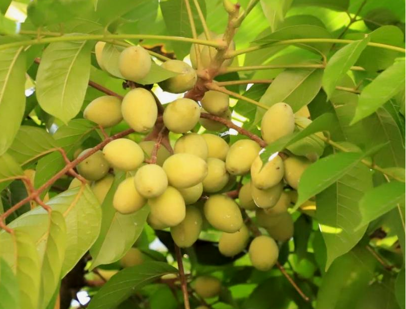 ‘金嘉’橄榄,是从本地‘香种’橄榄实生群体中单株选育而成,经多年多点试验试种,遗传性状稳定。树势强,丰产稳产。10月下旬至11月上旬成熟,果实椭圆形,果皮金黄色,肉色黄白,肉质爽脆,较化渣,涩味轻,榄味浓,耐贮藏,综合性状优良,适宜我省橄榄产区种植。平均单果重12.11克,可食率85.3%,可溶性固形物含量11.2%,糖(以葡萄糖计)含量2.3克/100克,维生素C含量4.54毫克/100克,总酸含量12.83克/千克,粗纤维含量3.3%,钙含量1.39×104毫克/千克。