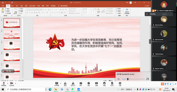 为了加强大学生党员教育,充分发挥党员先锋模范作用,积极营造良好党风、校风、学风,在大学生党员中开展“七个一”主题活动。园林学生党支部开展红色经典著作读后感分享会。通过研读红色经典著作,加深对红色经典著作的认识以及深刻认识红色经典著作中的人物与性格品质,园林学生党支部于2021年6月16日通过腾讯会议开展了线上红色经典著作读后感分享会。园林学生党支部学生党员共同参与了此次会议。